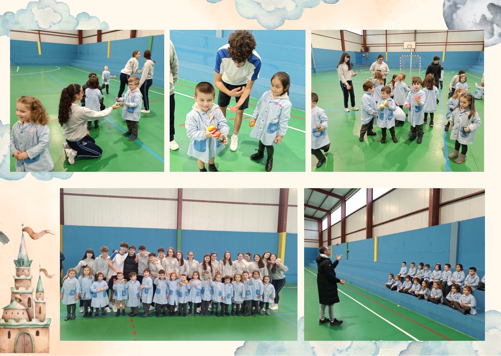 XOGANDO COS MAIORES Administrador Noticias 23 enero, 202623 enero, 2026 O alumnado de 5º de Educación Infantil estamos a traballar os castelos e os bufóns, caracterizados por facer malabares. Os compañeiros e compañeiras de 3º da ESO axudáronnos a practicalos. Pasámolo moi ben!